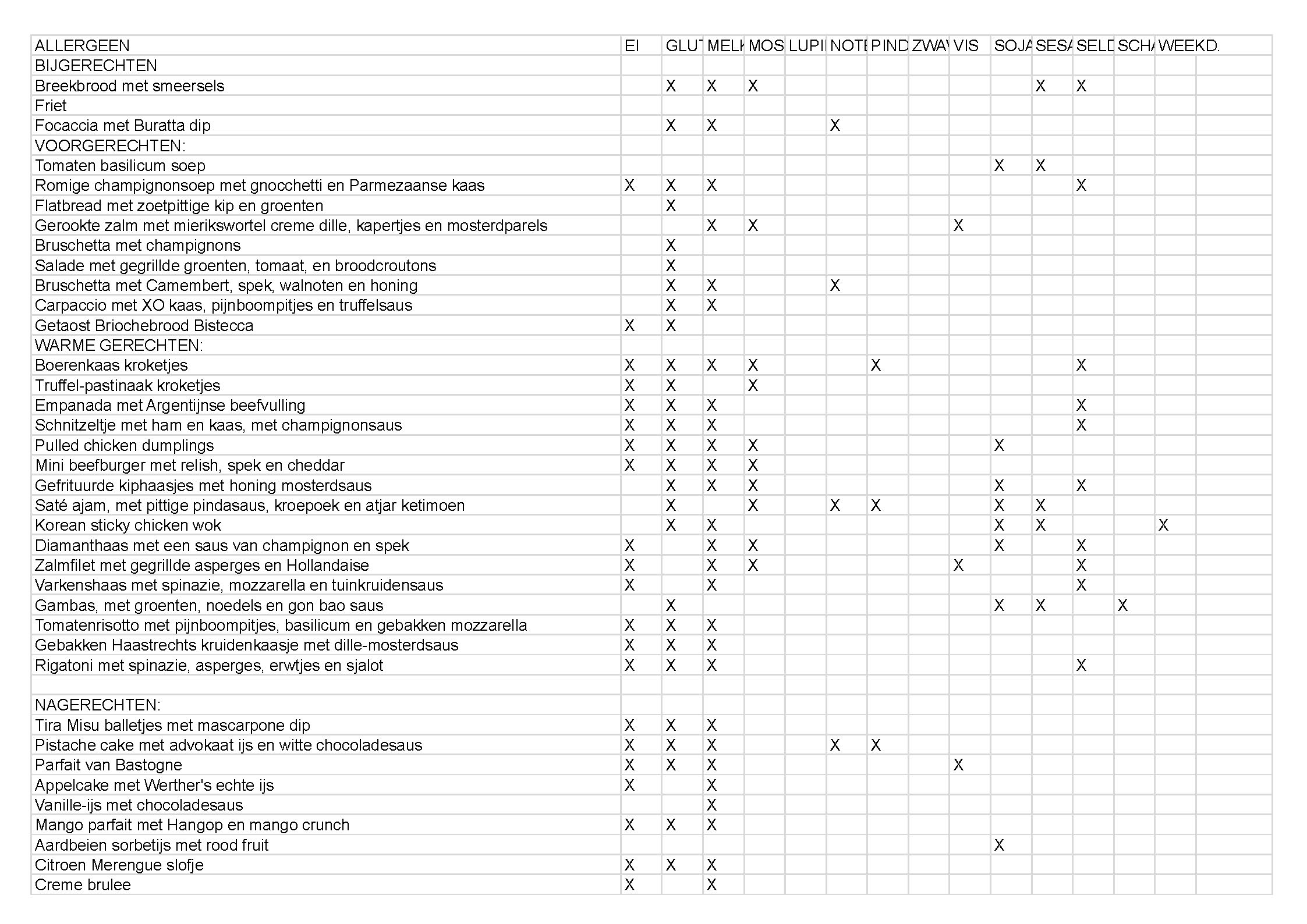 Heeft u een allergie of intolerantie? Bekijk hier onze allergenen lijst en ook onze speciale allergenen en dieten menu's.